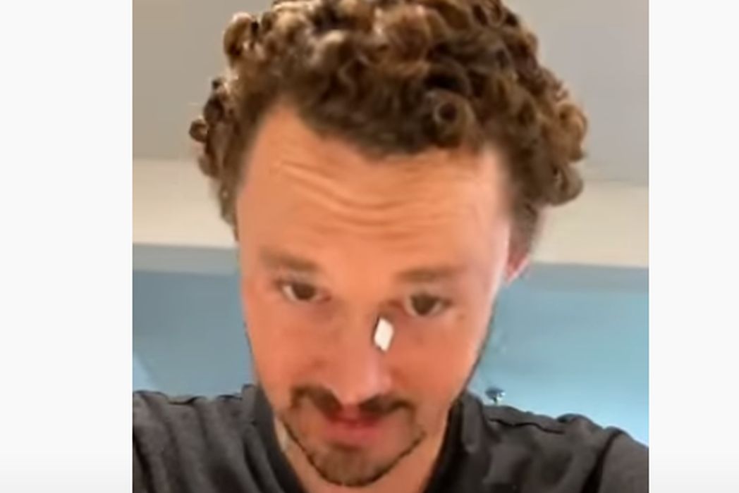 So hat ein ungeimpfter Mann ein Video veröffentlicht, in dem ein Magnet an seiner Stirn und seiner Nase haften bleibt, sogar wenn er den Kopf schüttelt: