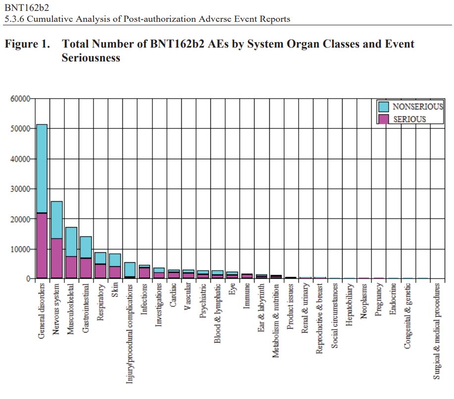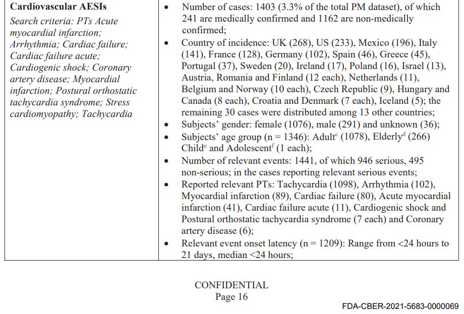 Es ist erwähnenswert, dass es durch die Schwärzung der angegebenen Anzahl der versendeten Dosen schwieriger wird, das potenzielle Schadensverhältnis zu beurteilen. Aber auch ohne dies sind 42.086 Fallberichte zu Patienten mit Nebenwirkungen, darunter 1.223 Todesfälle, an sich schon ein bedeutendes Signal, insbesondere wenn man bedenkt, dass der Schweinegrippe-Impfstoff von 1976 nach 25 Todesfällen zurückgezogen wurde.
