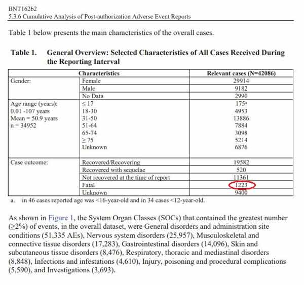 Pfizer-Dokument: 1.223 Todesfälle bis 28. Februar 2021 in Folge der Impfung