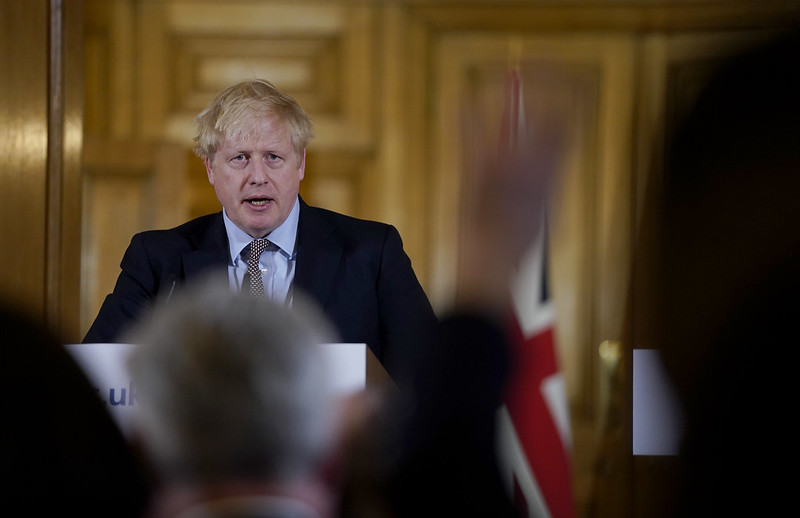 Foto: Premierminister Boris Johnson bei einer Coronavirus-Pressekonferenz. Foto von Andrew Parsons/Nr. 10 Downing Street, CC BY-NC-ND 2.0