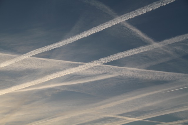 Chemtrails können an einem sonnigen Tag einen scheinbar wolkenverhangenen Himmel erzeugen. Foto von b_corsius auf Pixabay