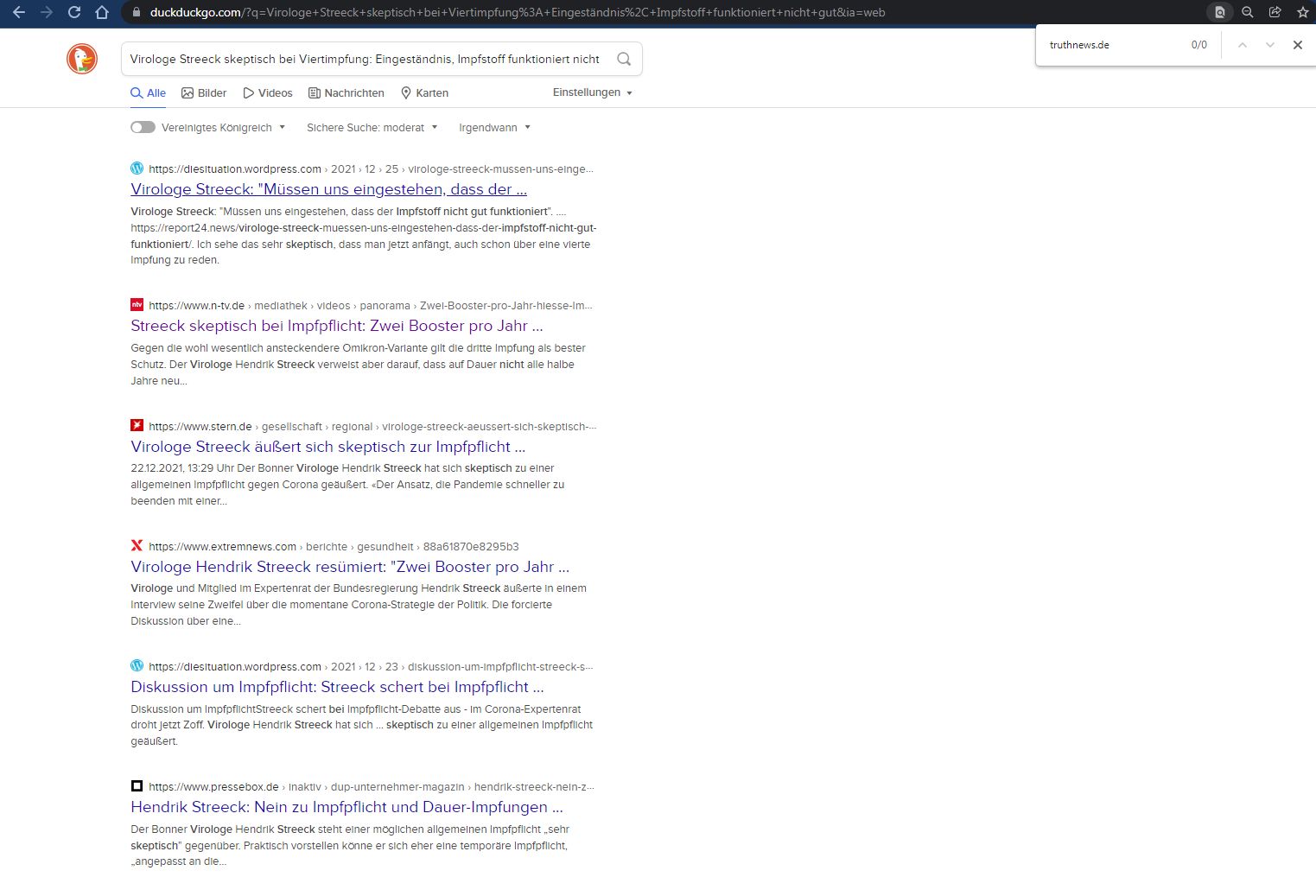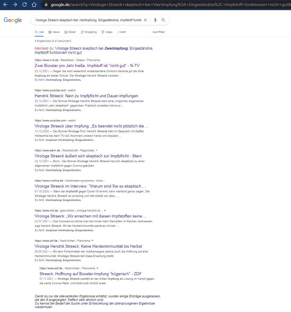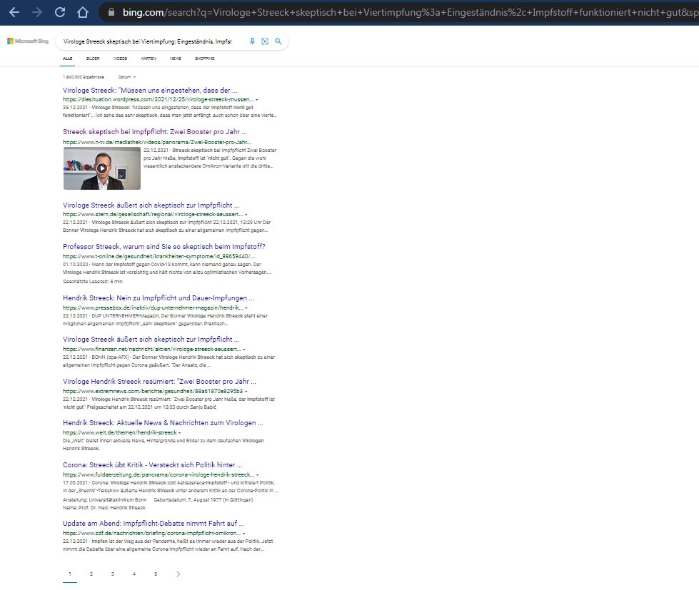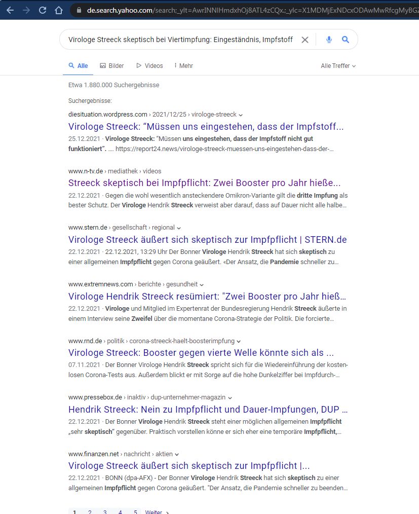 Gesucht wurde nach folgendem Artikel: Virologe Streeck skeptisch bei Viertimpfung: Eingeständnis, Impfstoff funktioniert nicht gut