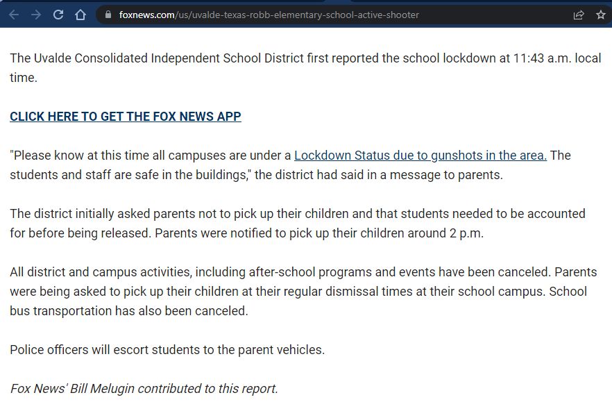 Mehrere Fakten zeigen, dass die offizielle Version der Ereignisse über den Amoklauf an der Schule im texanischen Uvalde mal wieder gelogen ist – wie bei wahrscheinlich jedem größeren vergangenen Amoklauf, der von internationalsozialistischen Politikern jedes Mal zur Einschränkung des Waffenbesitzrechts genutzt wird, denn eine faschistische Tyrannei ist leichter gegen unbewaffnete Bürger durchzusetzen.