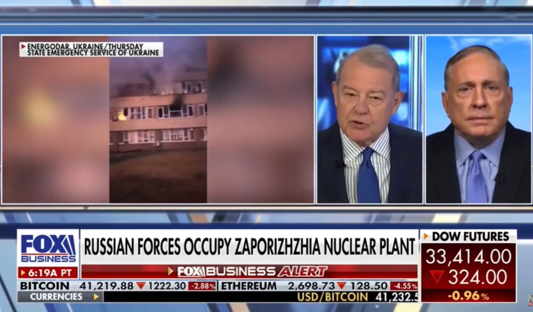Fox Business-Moderator Stuart Varney fragte ihn dann, ob Putin versuche, die Ukraine in Schutt und Asche zu legen.